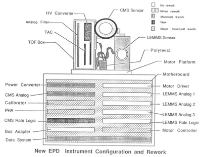 Figure 1-10. Post-Challenger EPD instrument configuration and rework Source: Critical Design Review, Dec. 1987. |