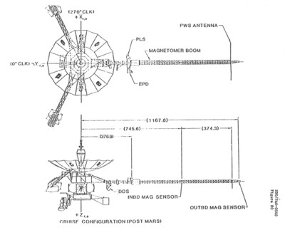 Figure 1-5. Cruise configuration post-Mars. Note: Main antenna did not deploy as shown. |