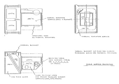 Figure 1-9 shows the single surface micrometeoroid protection for the telescope. Extra weight has been allocated by JPL for this protection.