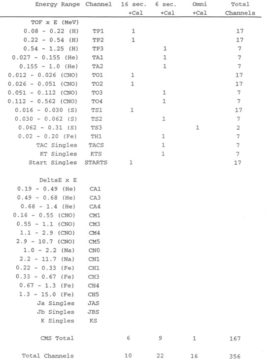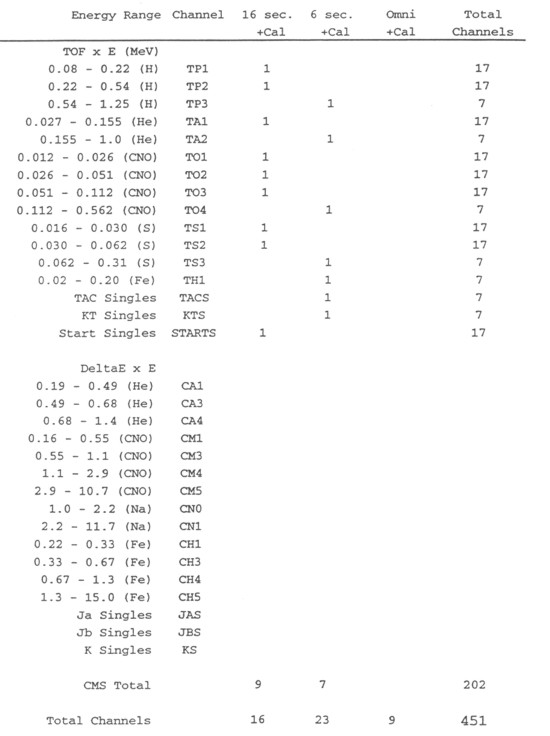 To calculate the amount of CDS memory required to store the rate channel bin array, one must determine which assumptions are to be used. The following table is based upon 451 bins (LEMMS and CMS combined).