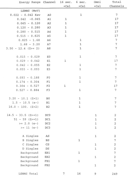 Table A2-1. Rate Channel Assignments for EPD LEMMS Sensor Channel Map 1